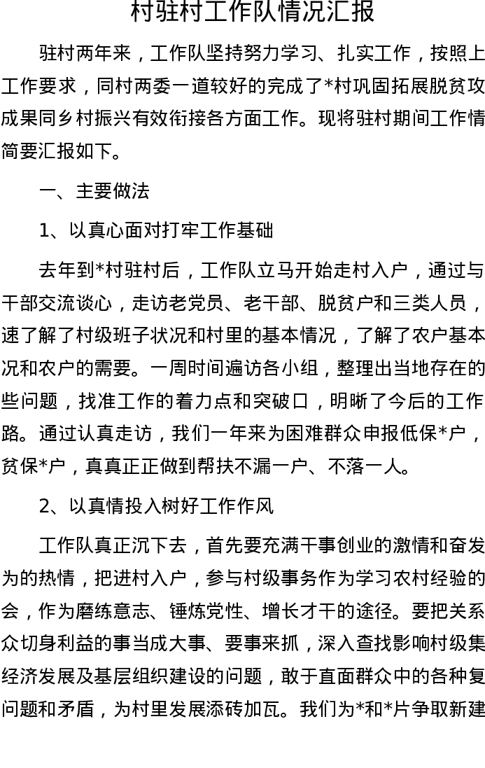 村驻村工作队情况汇报