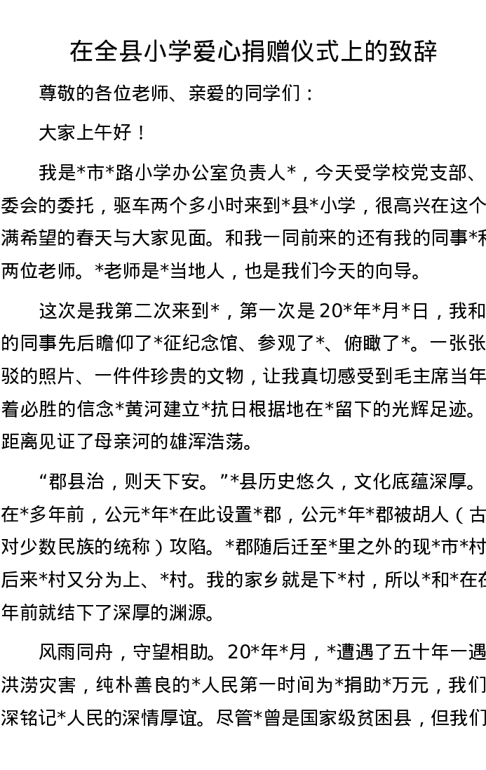 在全县小学爱心捐赠仪式上的致辞