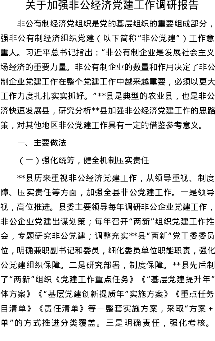 关于加强非公经济党建工作调研报告