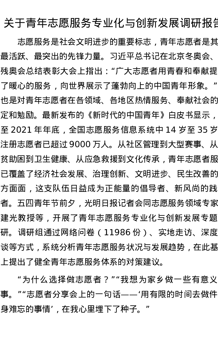 关于青年志愿服务专业化与创新发展调研报告