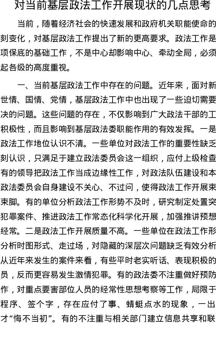 对当前基层政法工作开展现状的几点思考