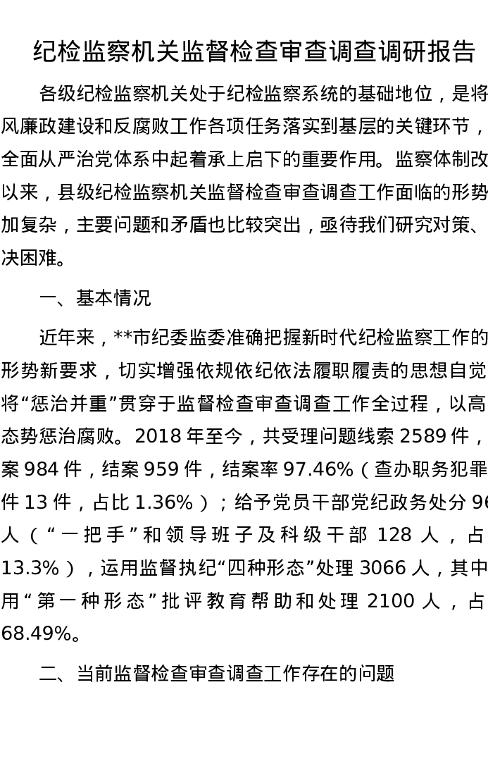 纪检监察机关监督检查审查调查调研报告