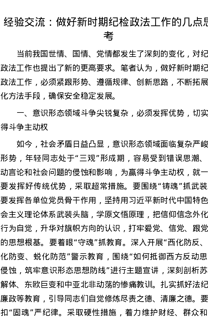 经验交流:做好新时期纪检政法工作的几点思考