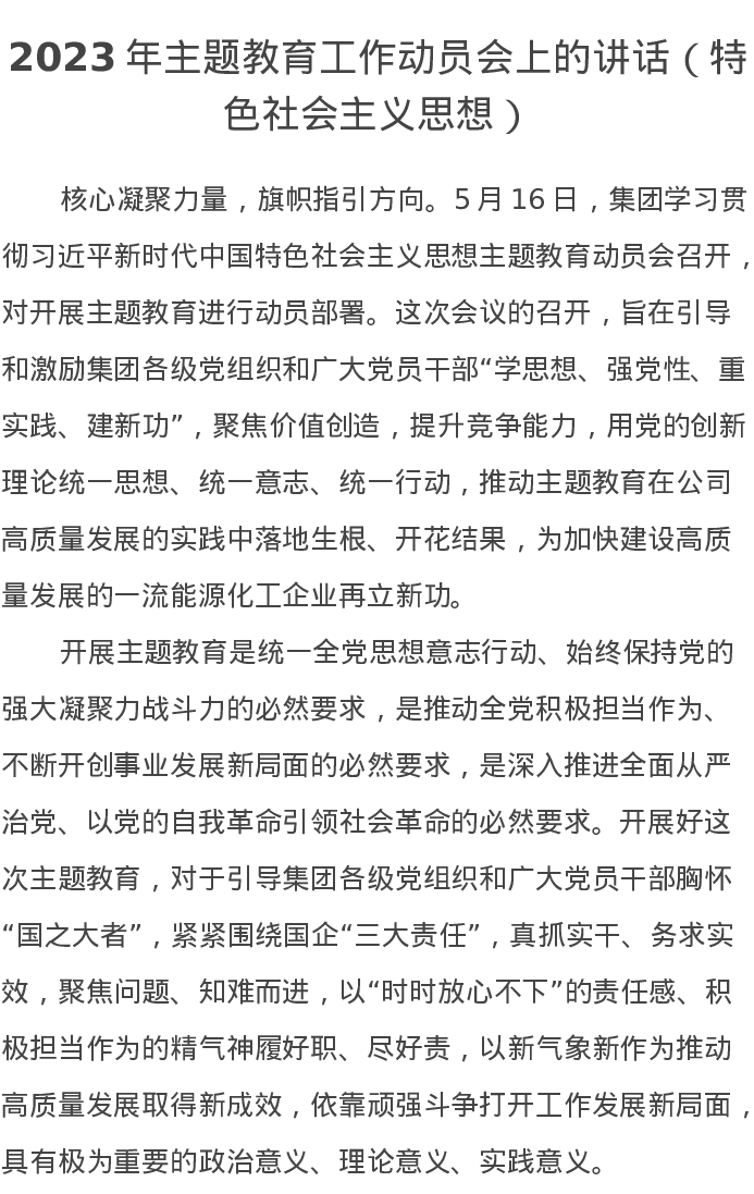 2023年主题教育工作动员会上的讲话(特色社会主义思想)