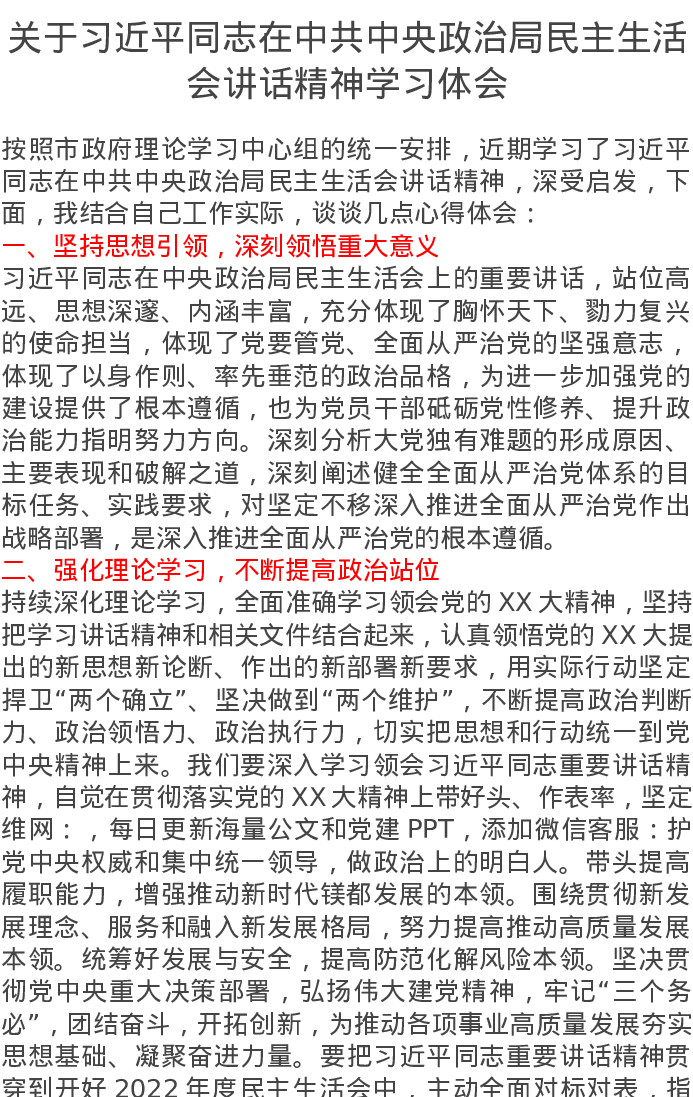 关于总书记在中共中央政治局民主生活会讲话精神学习体会