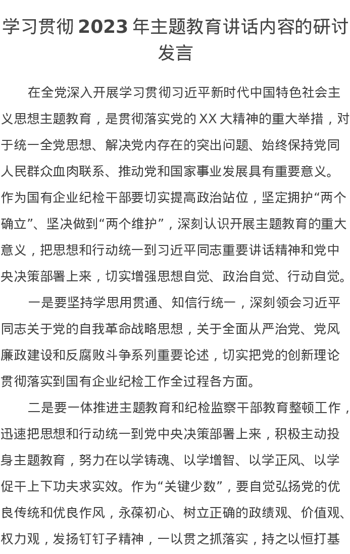 学习贯彻2023年主题教育讲话内容的研讨发言(特色社会主义思想)