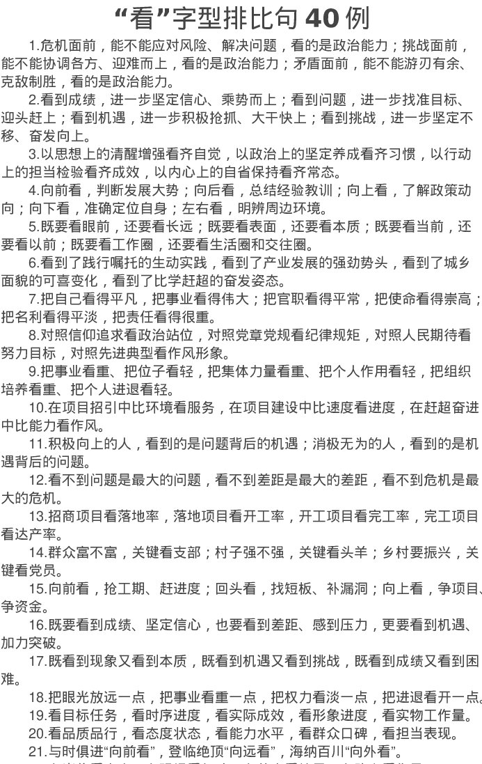“看”字型排比句40例(2023年5月19日)