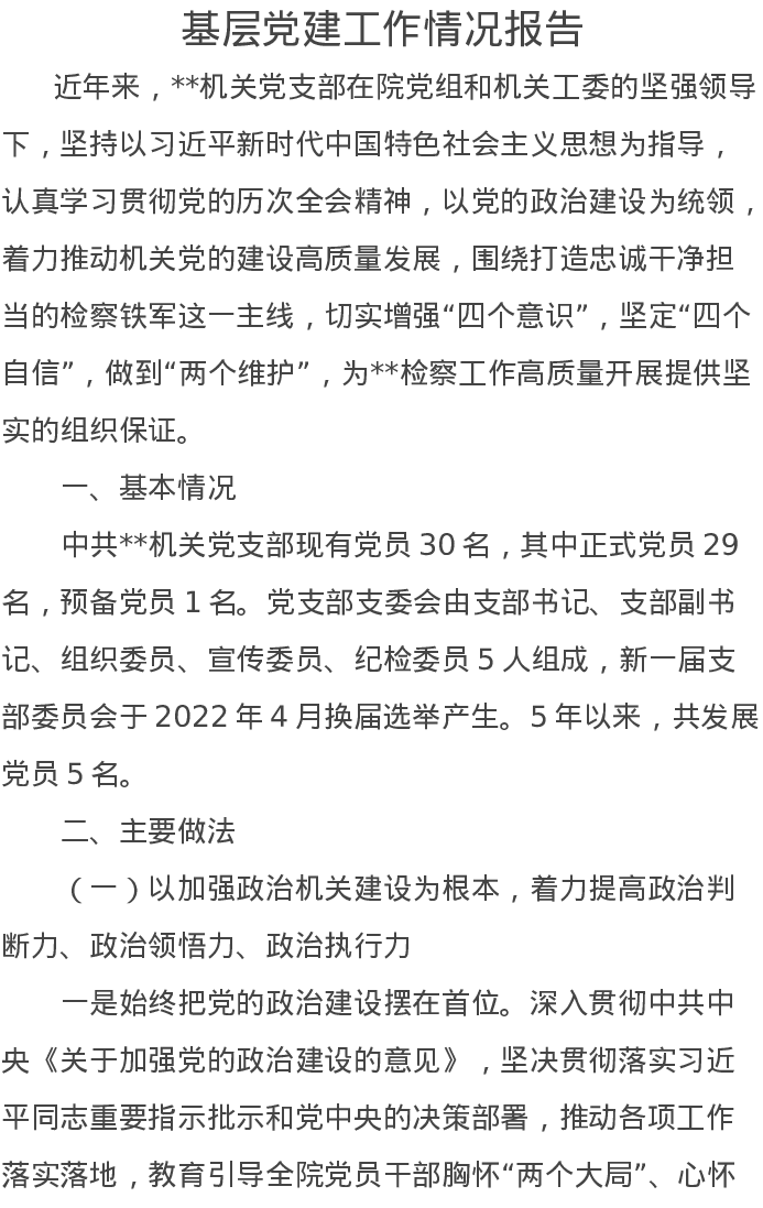 基层党建工作情况报告