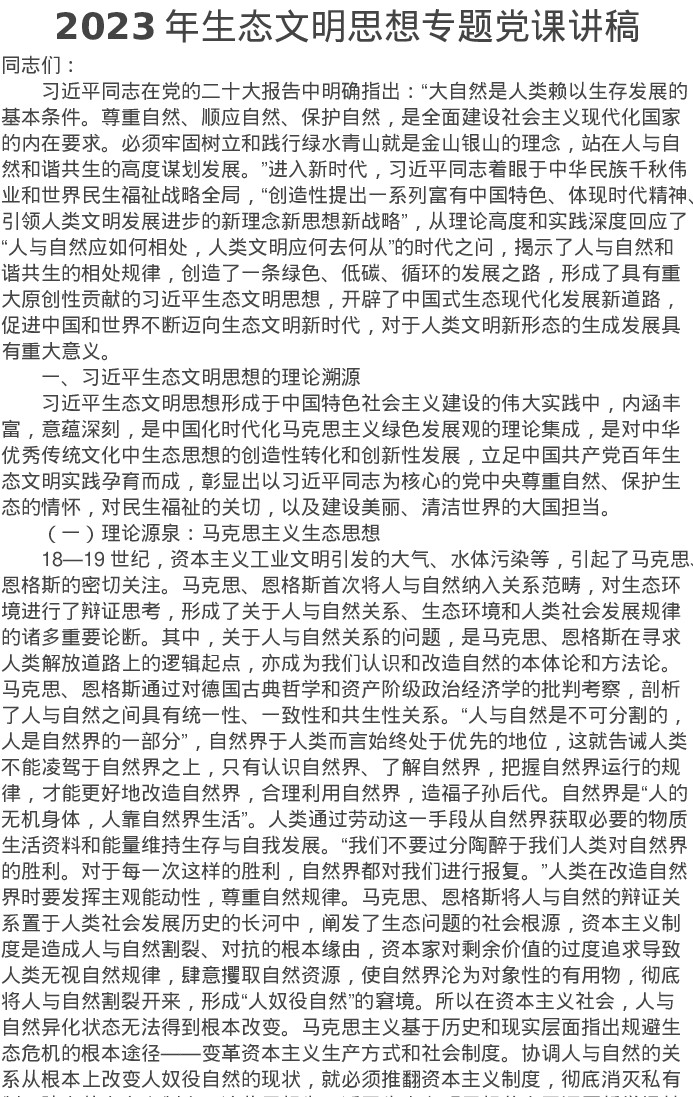 2023年生态文明思想专题党课讲稿