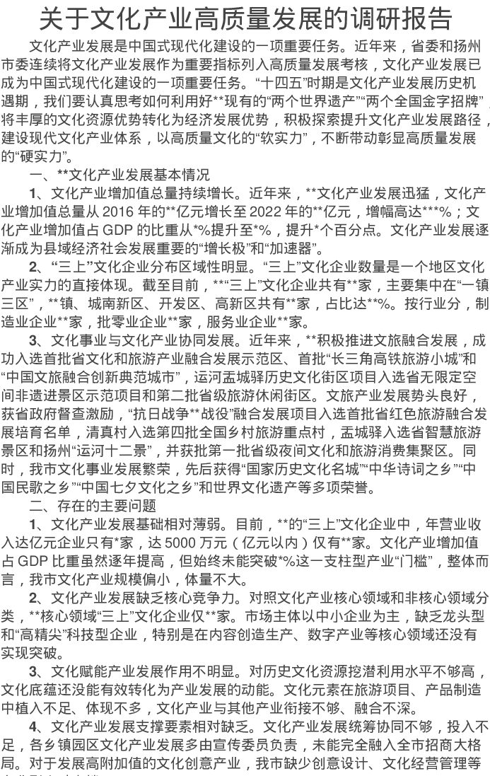 关于文化产业高质量发展的调研报告