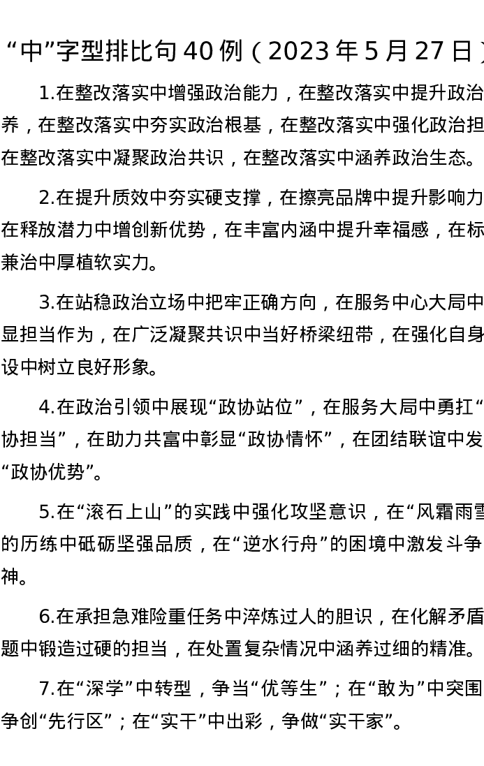 “中”字型排比句40例(2023年5月27日)