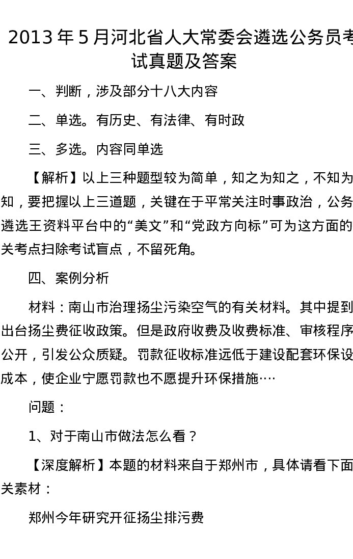 2013年5月河北省人大常委会遴选公务员考试真题及答案