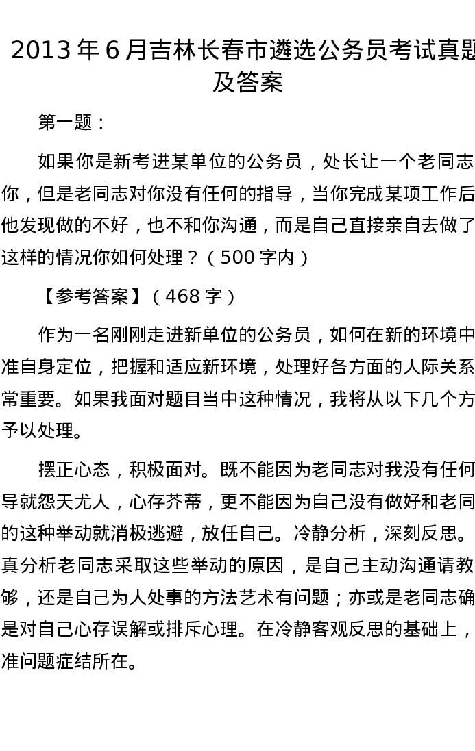 2013年6月吉林长春市遴选公务员考试真题及答案