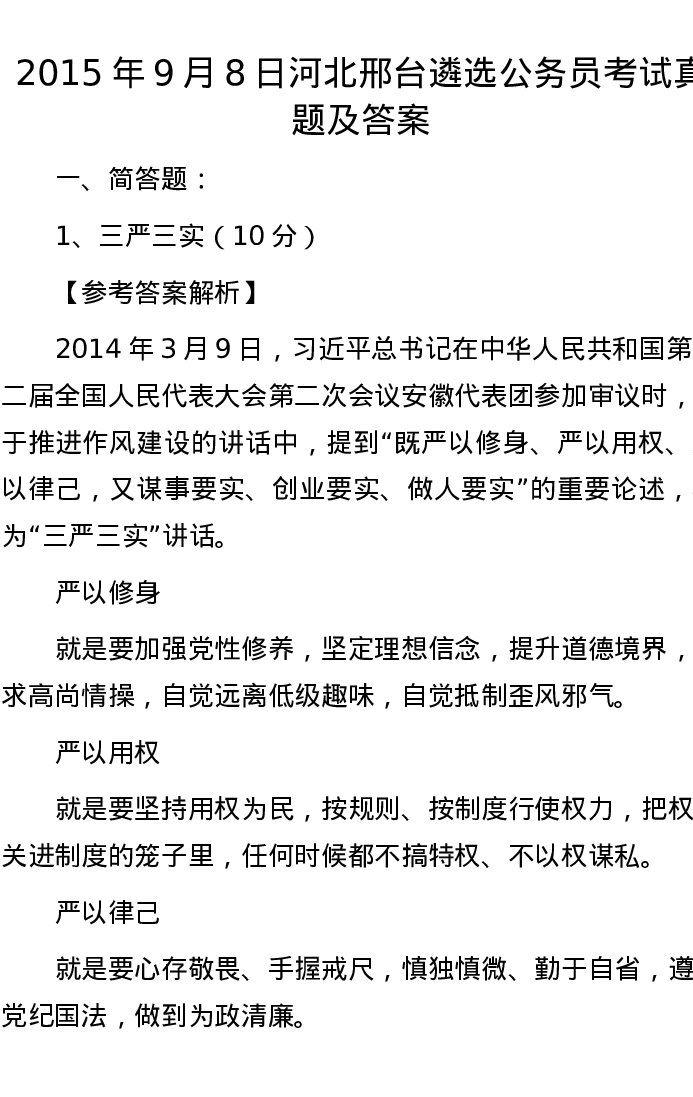 2015年9月8日河北邢台遴选公务员考试真题及答案