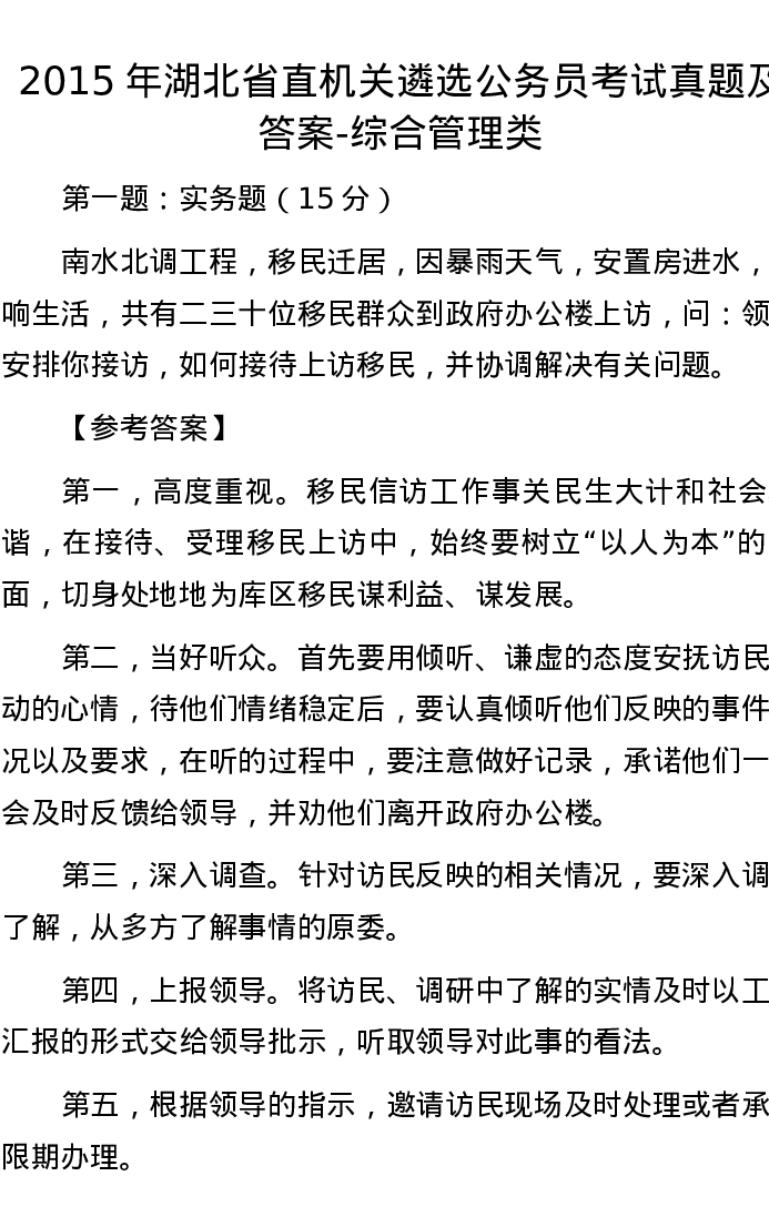 2015年湖北省直机关遴选公务员考试真题及答案-综合管理类