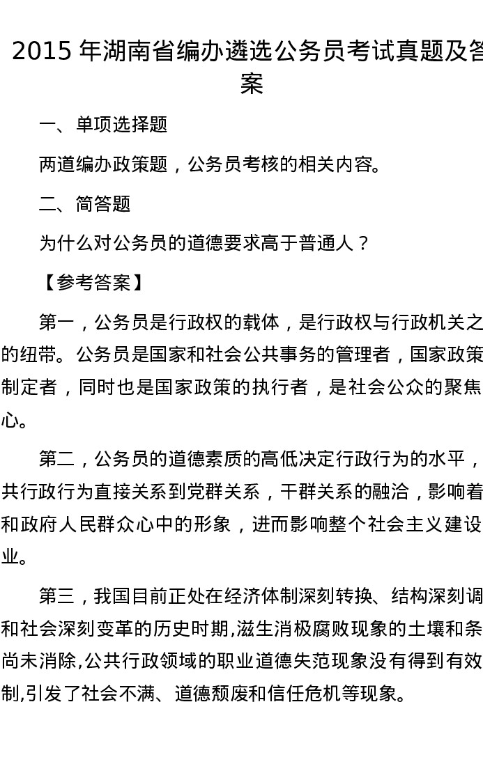 2015年湖南省编办遴选公务员考试真题及答案