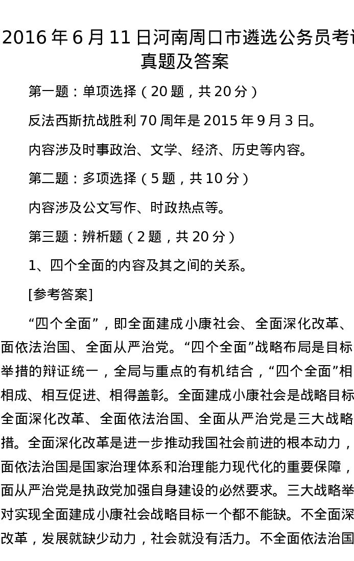 2016年6月11日河南周口市遴选公务员考试真题及答案