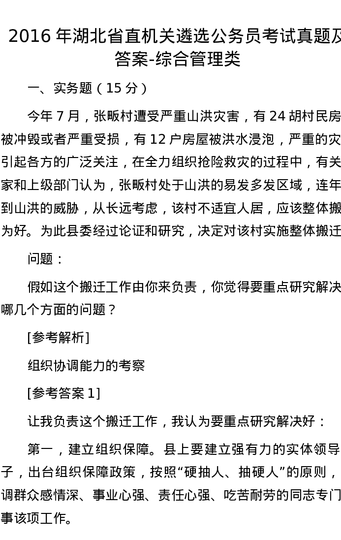 2016年湖北省直机关遴选公务员考试真题及答案-综合管理类
