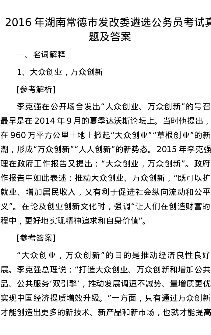 2016年湖南常德市发改委遴选公务员考试真题及答案