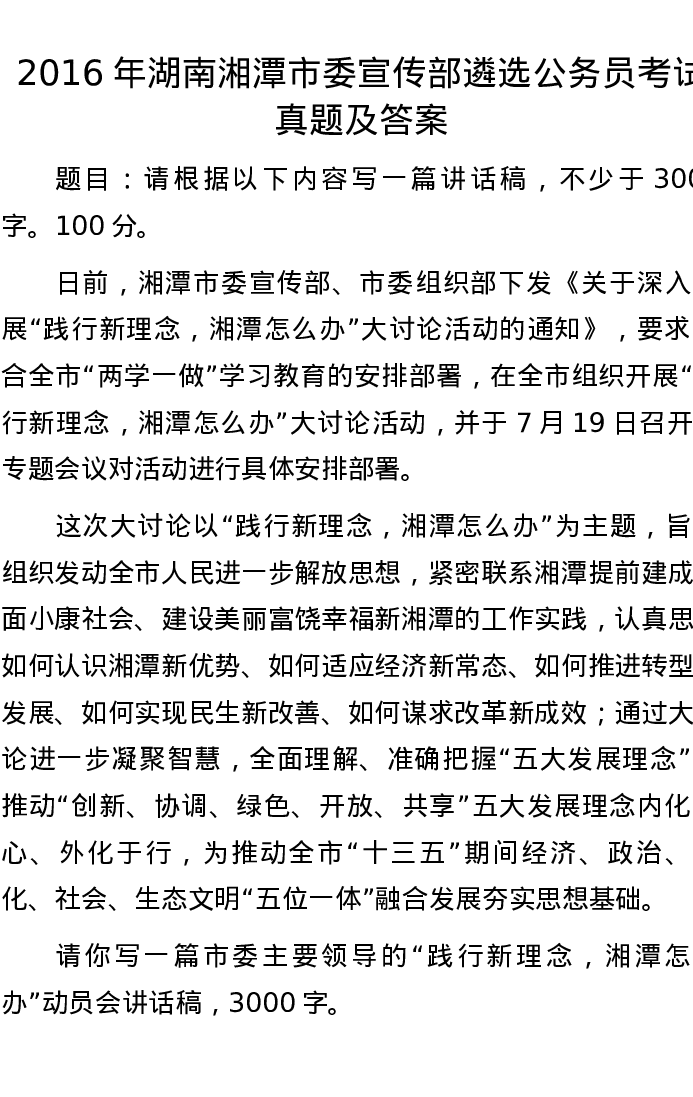 2016年湖南湘潭市委宣传部遴选公务员考试真题及答案