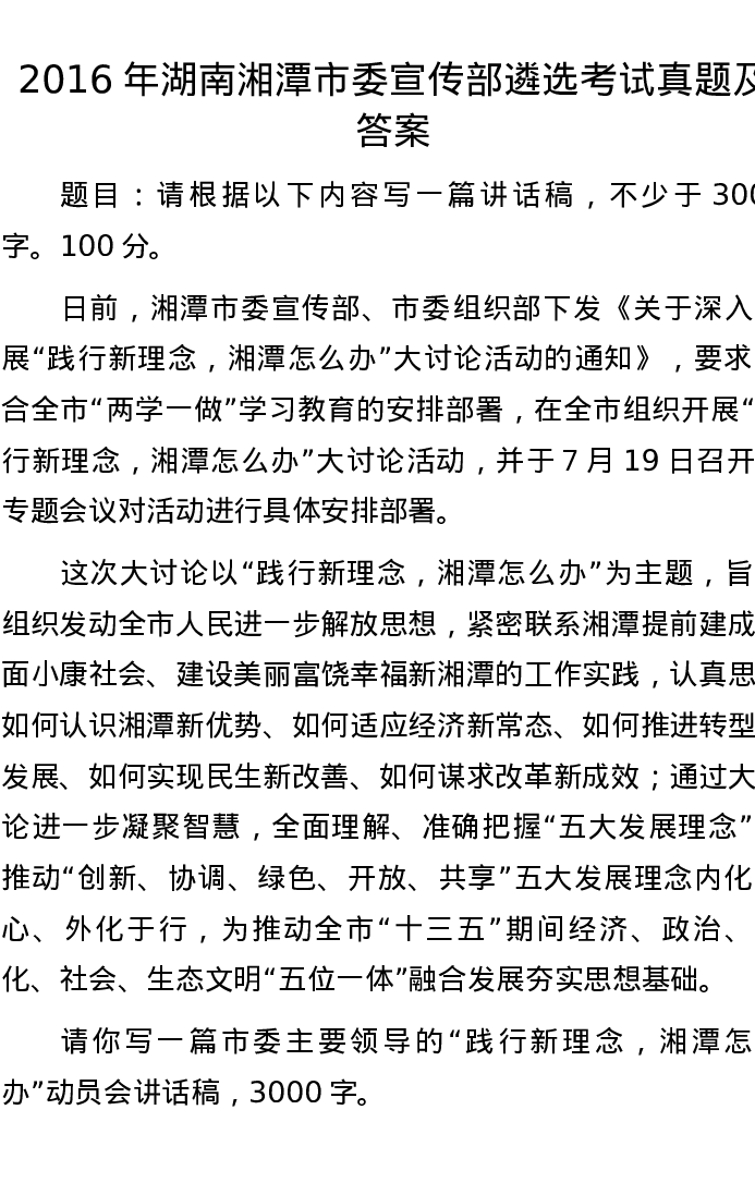 2016年湖南湘潭市委宣传部遴选考试真题及答案