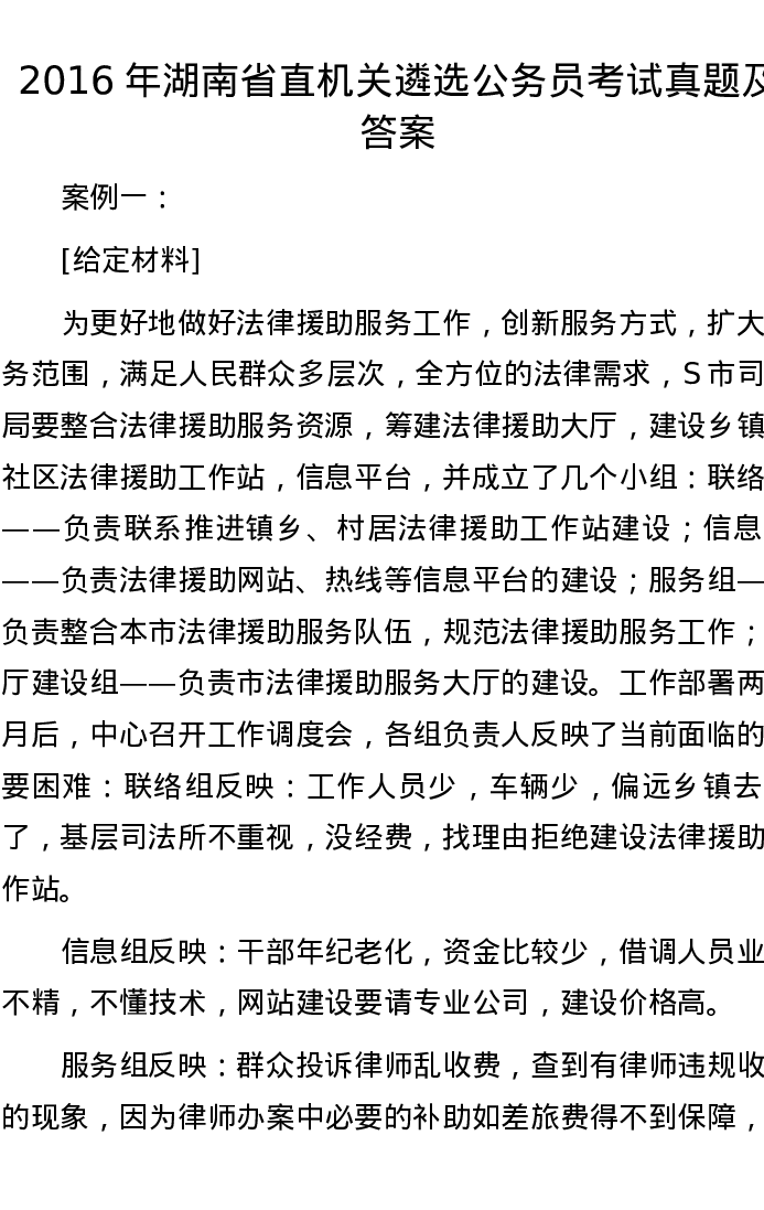 2016年湖南省直机关遴选公务员考试真题及答案