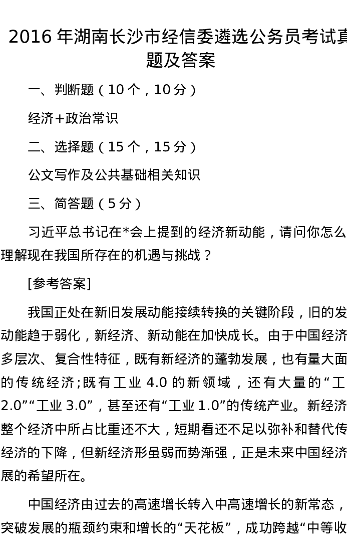 2016年湖南长沙市经信委遴选公务员考试真题及答案