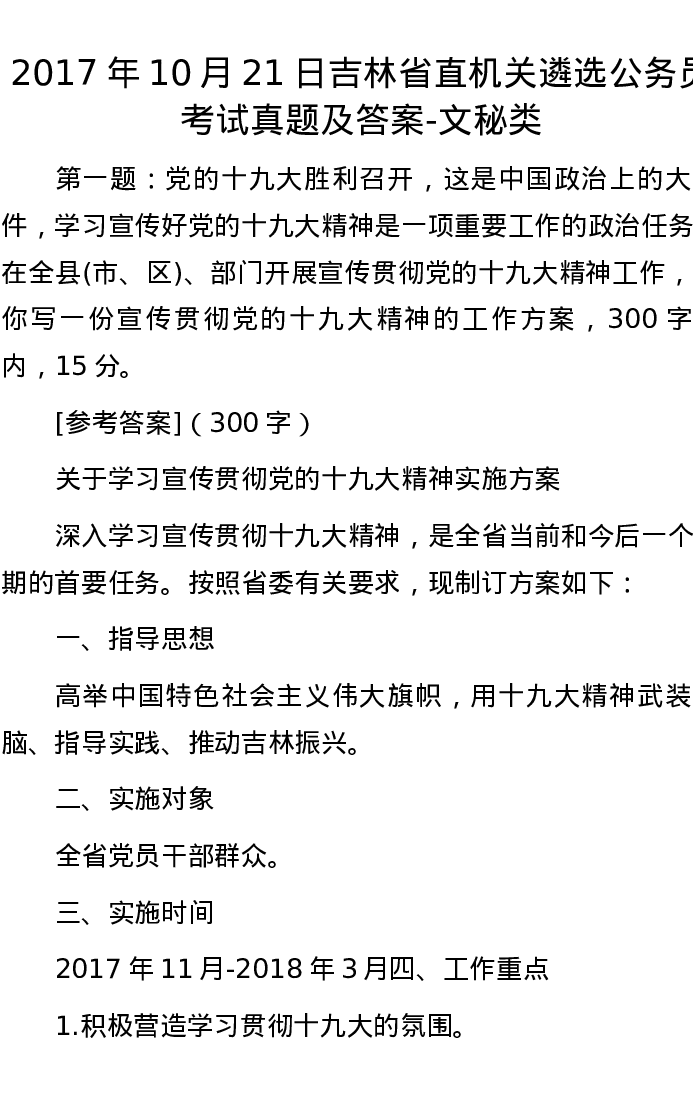 2017年10月21日吉林省直机关遴选公务员考试真题及答案-文秘类