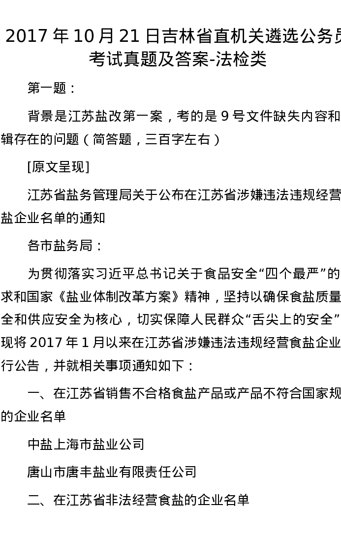 2017年10月21日吉林省直机关遴选公务员考试真题及答案-法检类