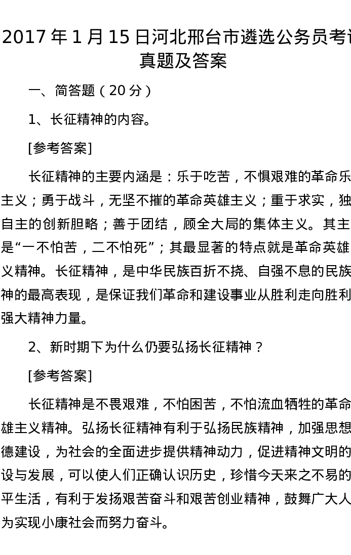 2017年1月15日河北邢台市遴选公务员考试真题及答案