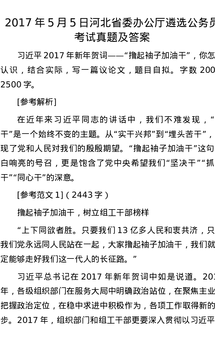 2017年5月5日河北省委办公厅遴选公务员考试真题及答案