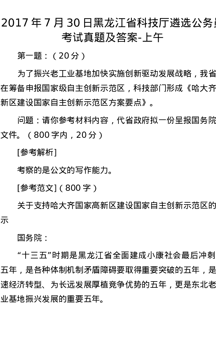 2017年7月30日黑龙江省科技厅遴选公务员考试真题及答案-上午
