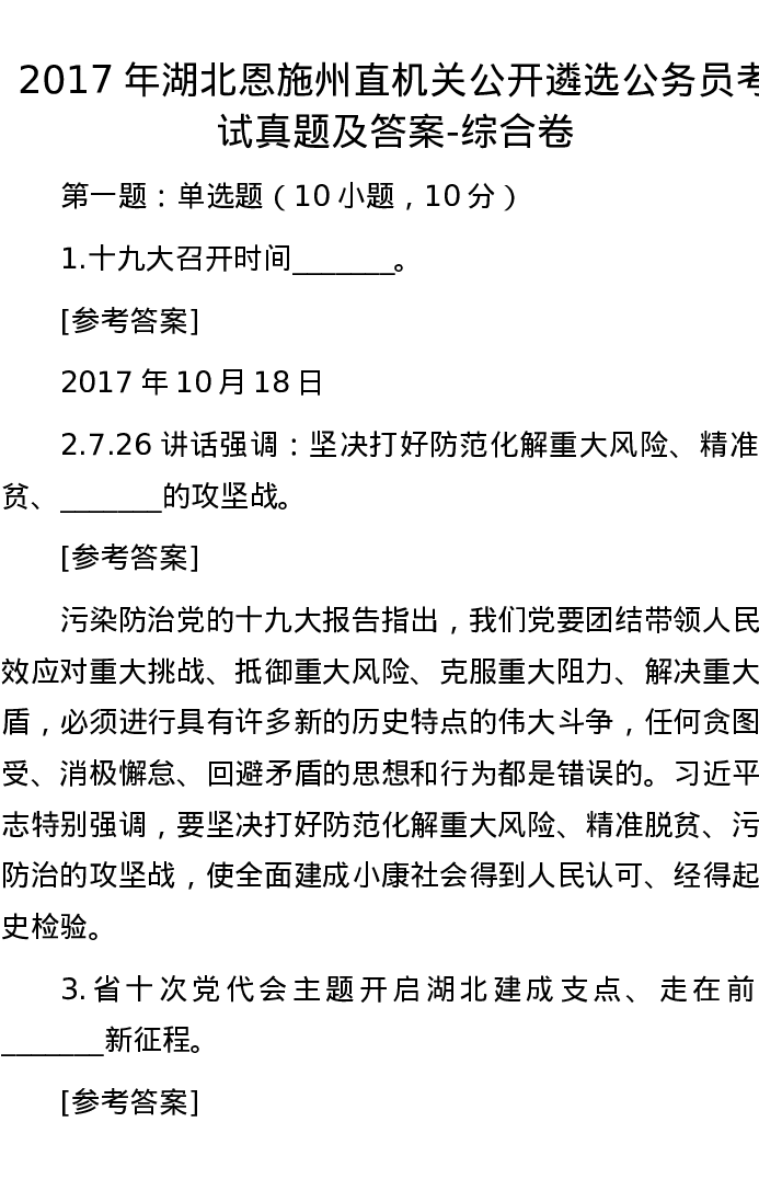 2017年湖北恩施州直机关公开遴选公务员考试真题及答案-综合卷