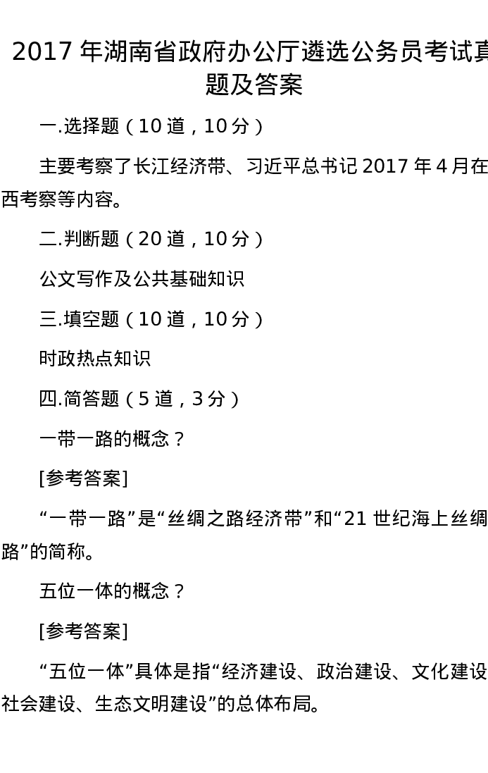 2017年湖南省政府办公厅遴选公务员考试真题及答案