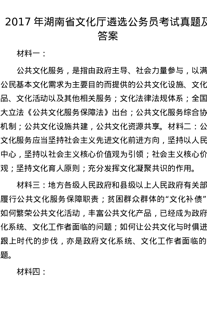 2017年湖南省文化厅遴选公务员考试真题及答案