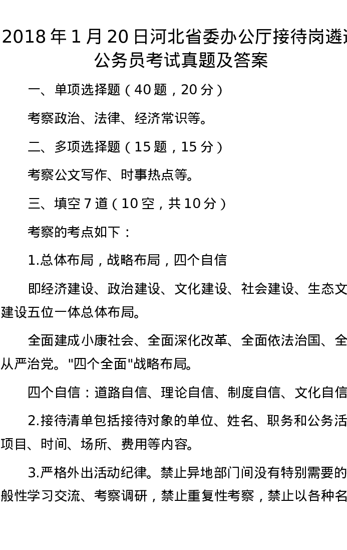 2018年1月20日河北省委办公厅接待岗遴选公务员考试真题及答案