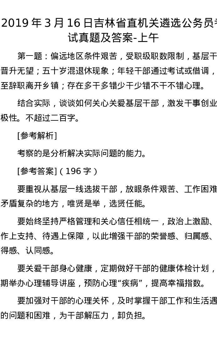 2019年3月16日吉林省直机关遴选公务员考试真题及答案-上午