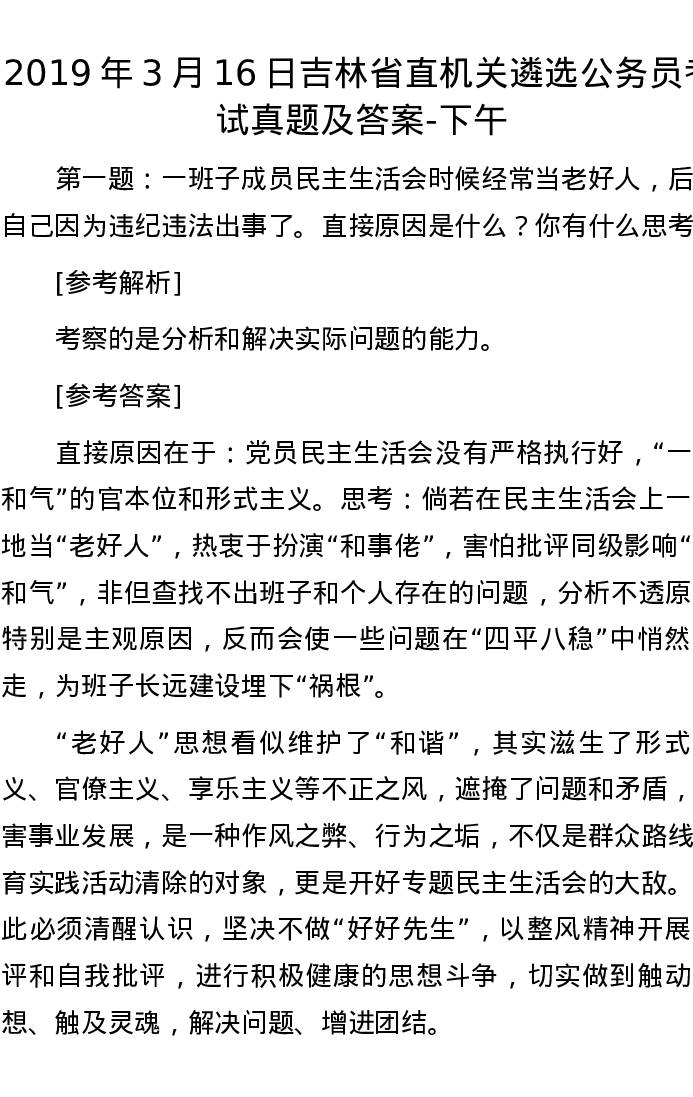 2019年3月16日吉林省直机关遴选公务员考试真题及答案-下午