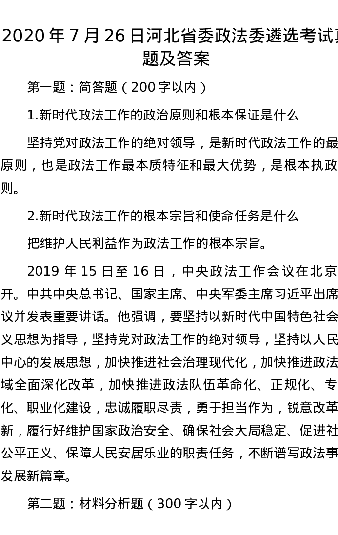 2020年7月26日河北省委政法委遴选考试真题及答案
