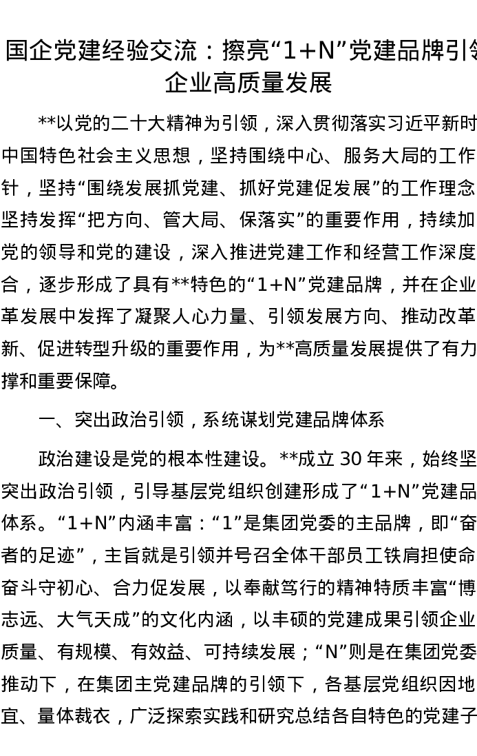 国企党建经验交流:擦亮“1+N”党建品牌引领企业高质量发展