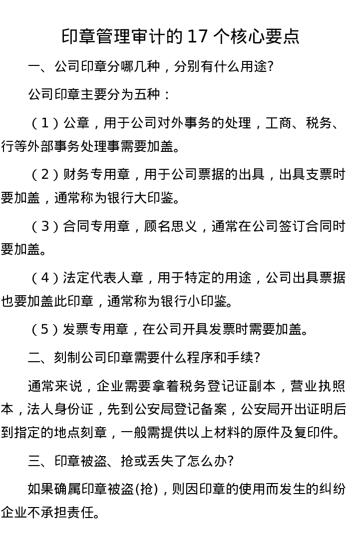 印章管理审计的17个核心要点