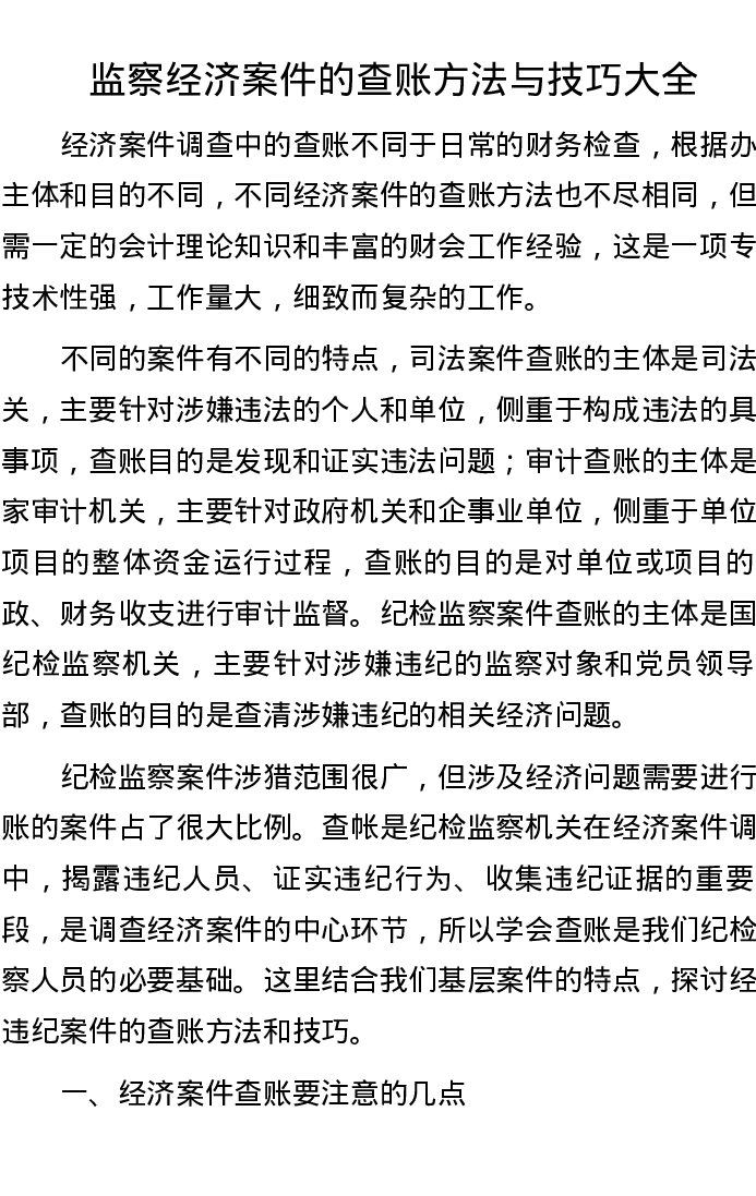 监察经济案件的查账方法与技巧大全