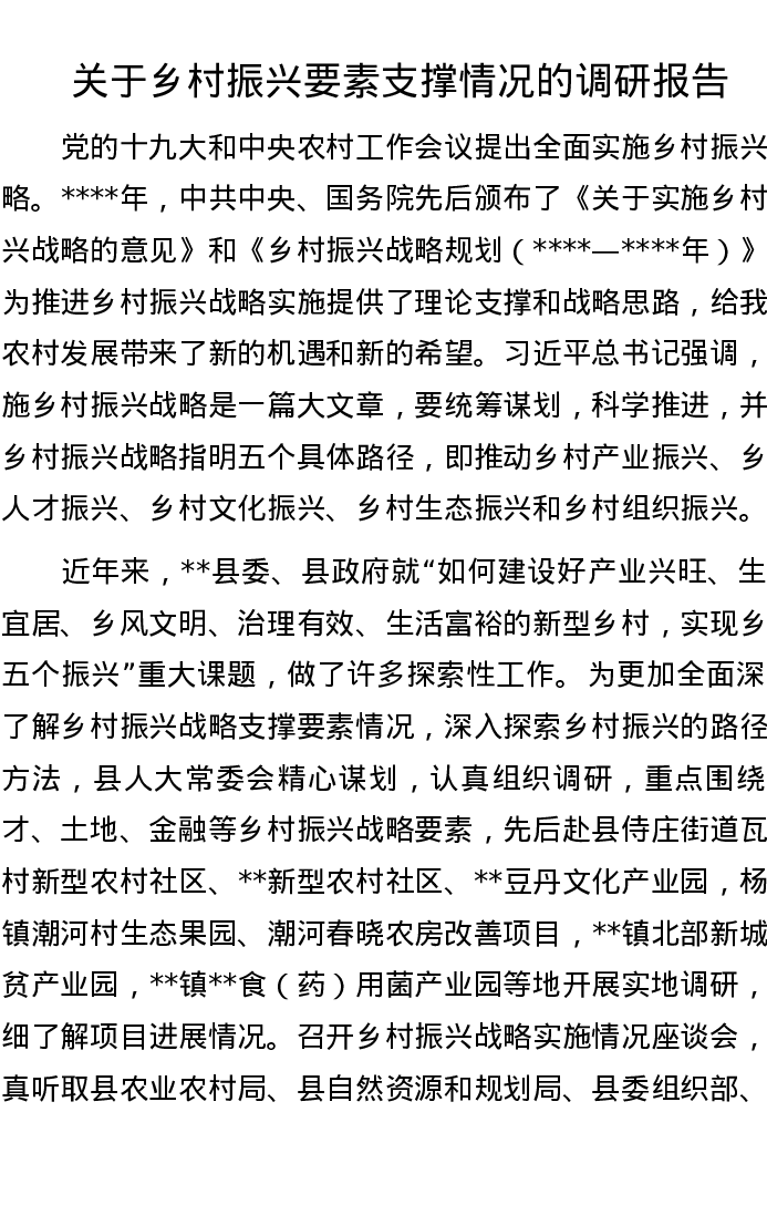 关于乡村振兴要素支撑情况的调研报告