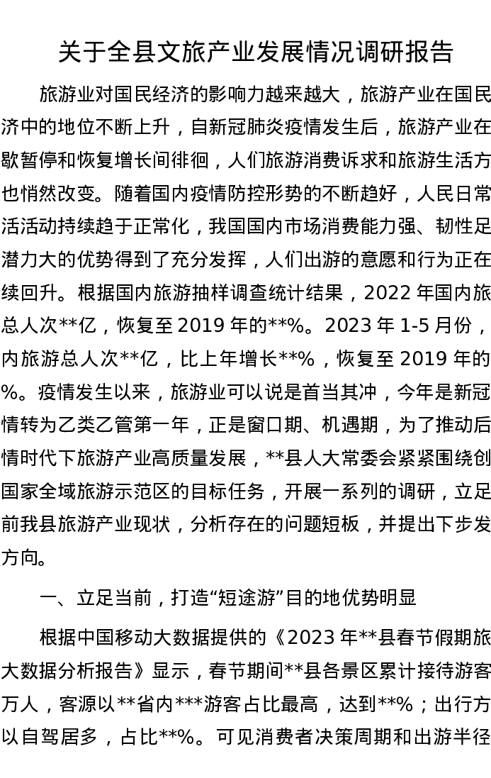 关于全县文旅产业发展情况调研报告