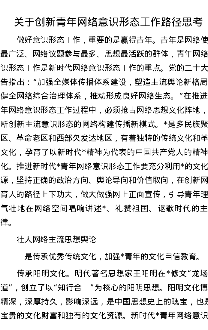 关于创新青年网络意识形态工作路径思考