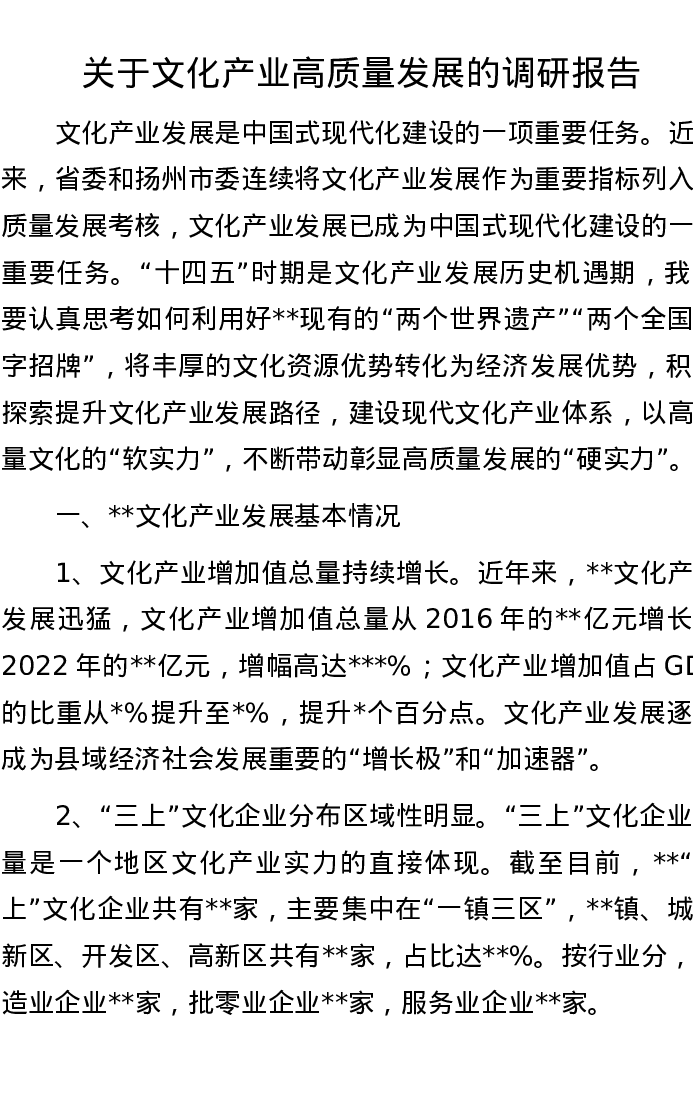 关于文化产业高质量发展的调研报告