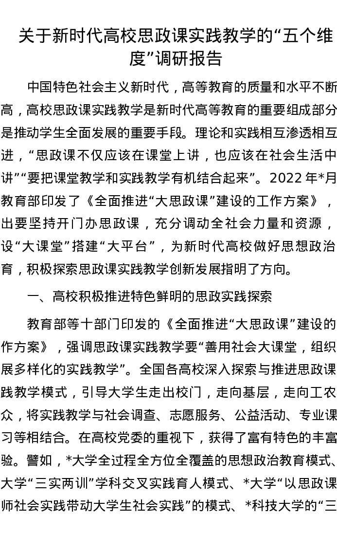 关于新时代高校思政课实践教学的“五个维度”调研报告