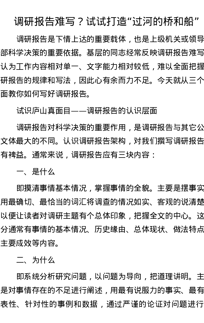 调研报告难写?试试打造“过河的桥和船”