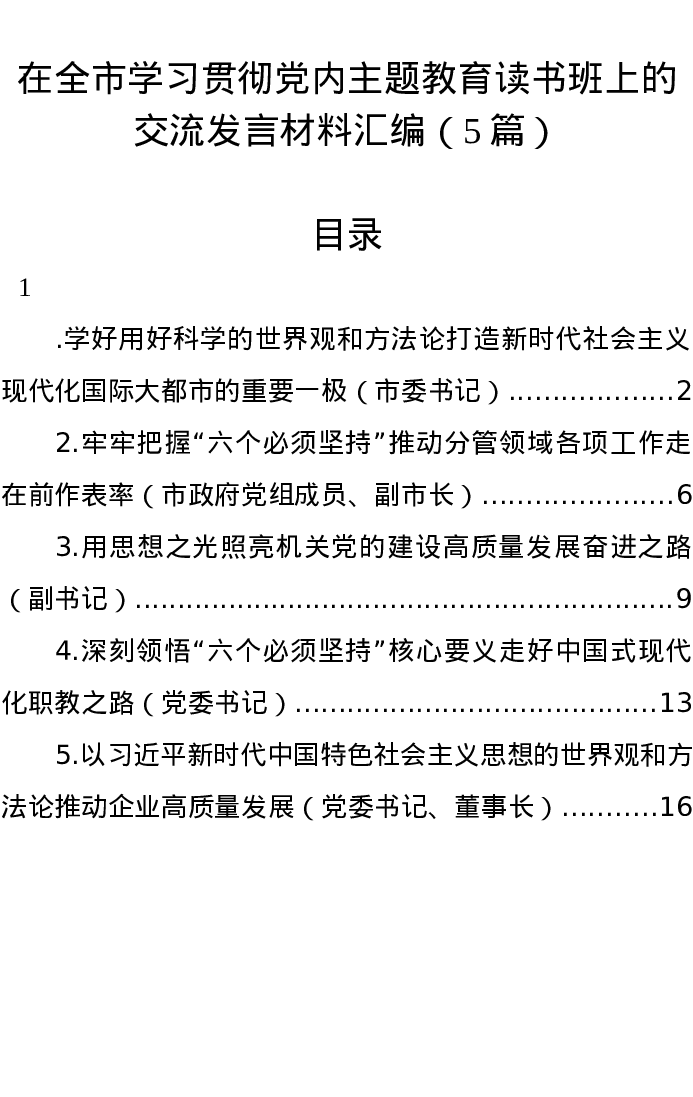 汇编:在全市学习贯彻党内主题教育读书班上的交流发言5篇(特色社会主义思想)