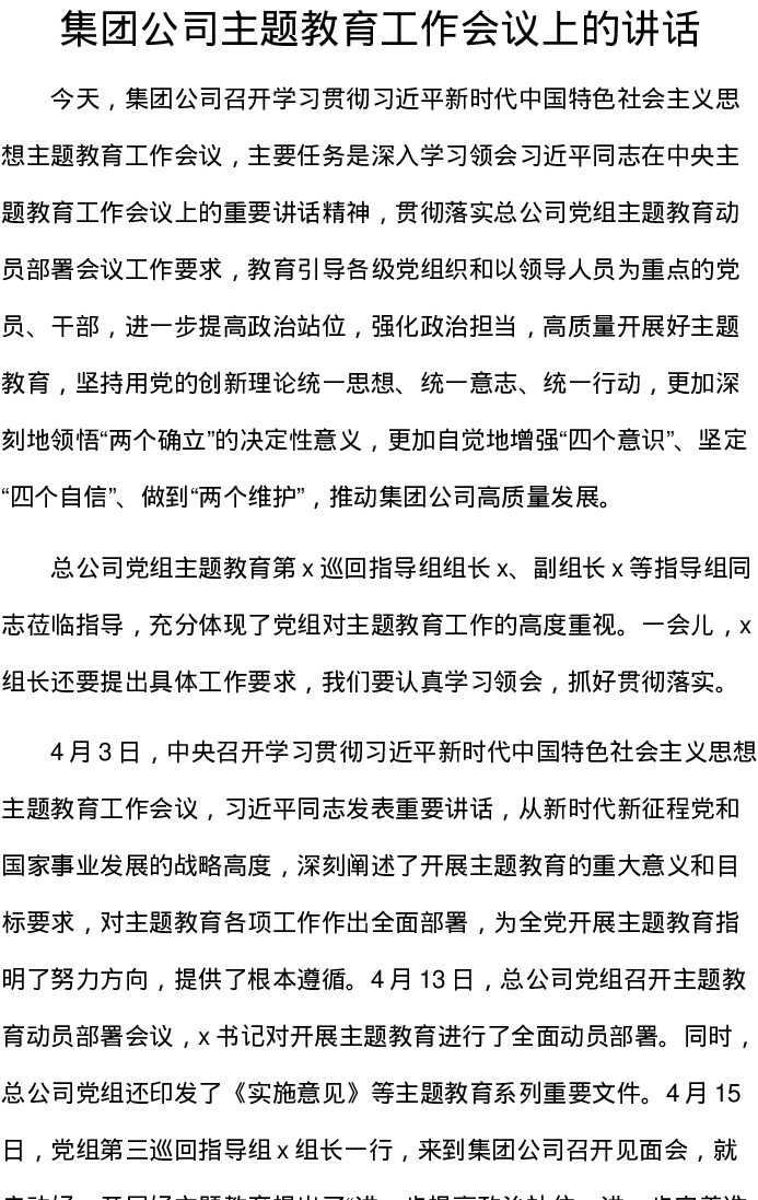 集团公司主题教育工作会议上的讲话(特色社会主义思想)